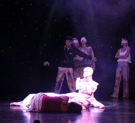 feinsinniger clownesker Pantomime. Opulente, gesungene und getanzte Bilder